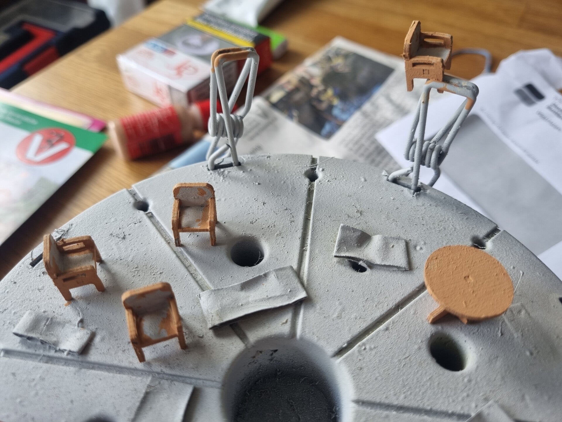 Der Kamin hat seine schicke Lackierung erhalten! Ein paar kleine Stellen müssen noch mit einem feinen Pinsel nachbearbeitet werden...