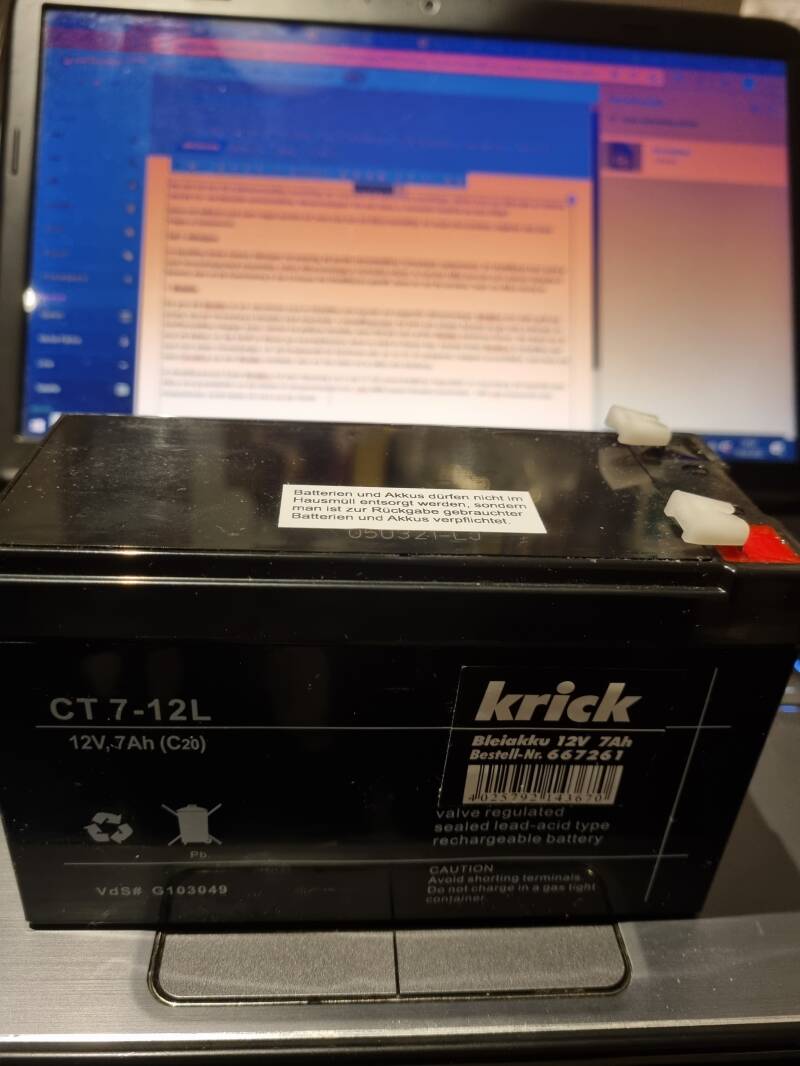 Hinweis: Ein solcher Akku enthält lt. Kennzeichnung Pb, also Blei. Nach Ablauf der Lebenszeit darf er nicht über den Hausmüll entsorgt werden sondern muss zum Händler zurückgeschickt werden, der ihn auch kostenlos annehmen muss. Deshalb: Kaufbeleg aufbewahren! Alternativ können Sie den verbrauchten Akku (gegen Gebühren?) als Sondermüll selbst entsorgen. Hier geben kommunale Wertstoffhöfe oder Umweltämter Auskunft, wo sie die Akkus abgeben können!