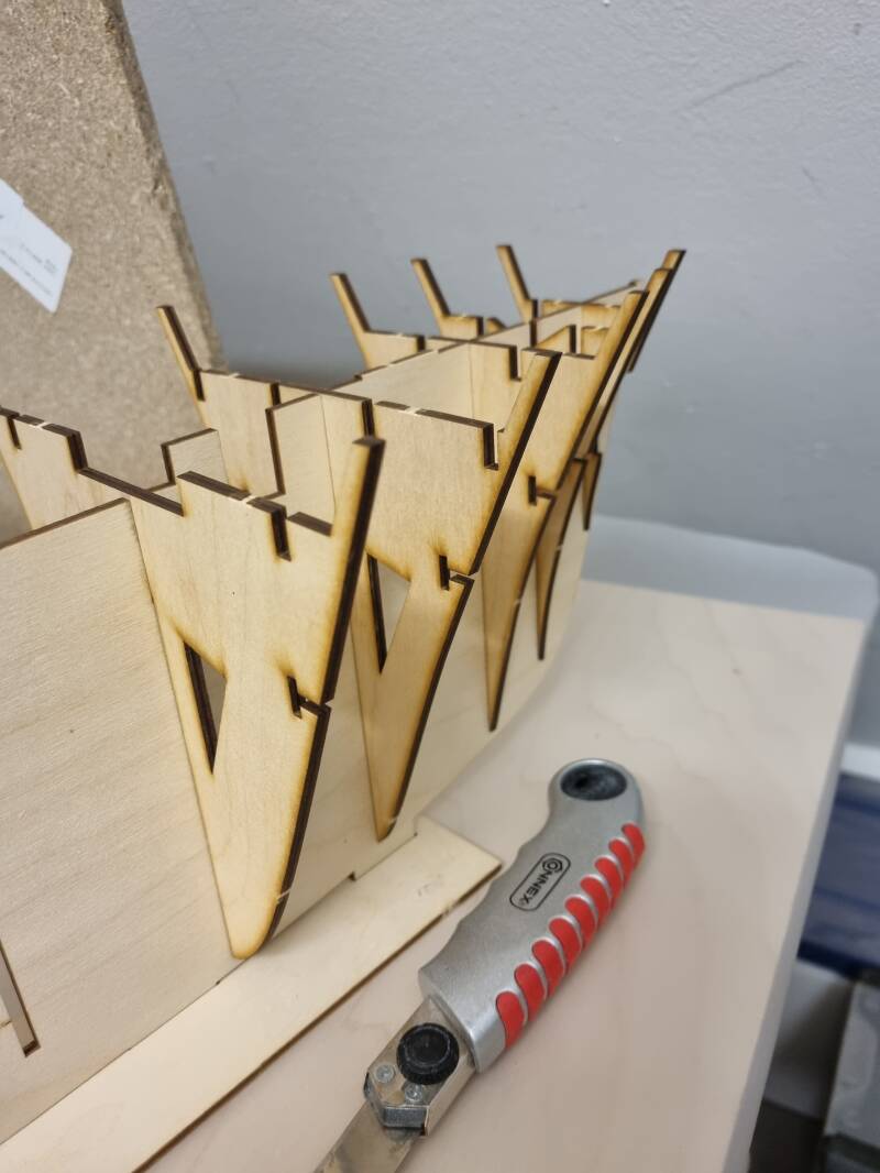 Heute wurden weitere 3,5 Baustunden investiert und u.a. die gebogene Frontwand des oberen Decks eingebaut.