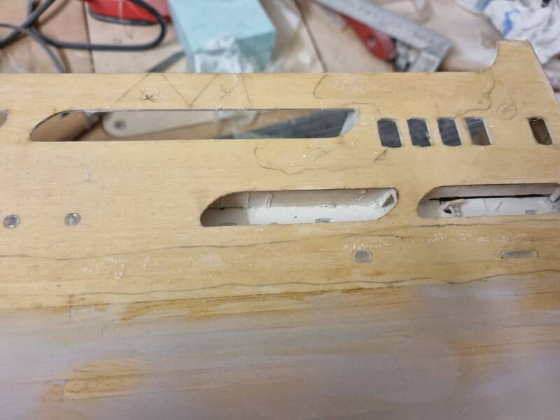 Nachdem die Backbordseite komplett beplankt, verspachtelt und verschliffen ist, wird nun die Steuerbordseite beplankt: